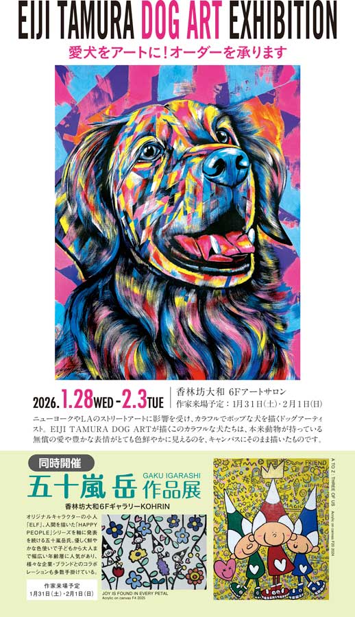 彼の作品は観る人の心を魅了します。この機会にぜひご来場ください。